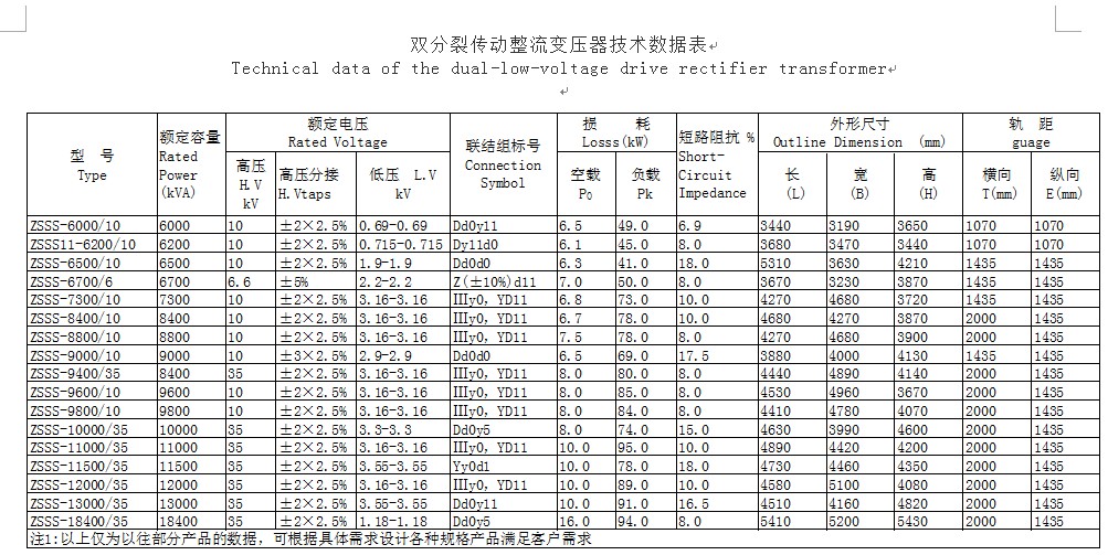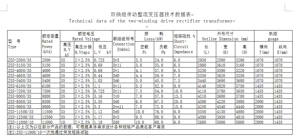 经过十多年的发展,我公司已经拥有了各类变频传动整流变压器设计、制造和试验一整套先进技术。2002年我公司生产的ZSS-11000/10传动整流变压器在沈阳虎石台国家变压器质量监督检验中心一次性通过突发短路试验。
